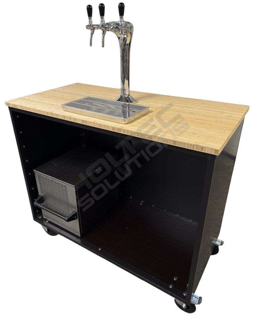 Rullebar 120 x 60cm monteret, komplet 3 haners fadølsanlæg.