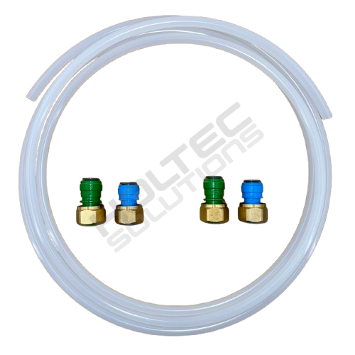 Komplet slange kit til 2 haner med hårde slanger, 1/2" JG fittings til anstikker. Anstikker bestilles separat.