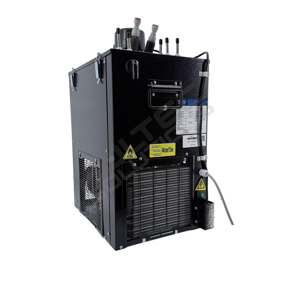 Fadølskøler V40 er en lille og kompakt vandbadskøler med kapacitet til 3 slinger. Den er velegnet til barer, caféer, private arrangementer og mindre installationer, hvor der ønskes stabil køling, driftssikkerhed og nem installation. V40 bruger energivenligt R290 kølemiddel og er udstyret med en 1/4 HK kompressor, hvilket sikrer professionel drift og lang levetid.
