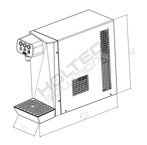 Drypbakken og støttegitteret er fremstillet i rustfrit stål (AISI 304) for høj hygiejne og nem rengøring. Venus er en af markedets mest kompakte drikkevandskølere og kan placeres direkte på bord eller disk – klar til brug med minimal installation.