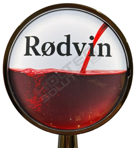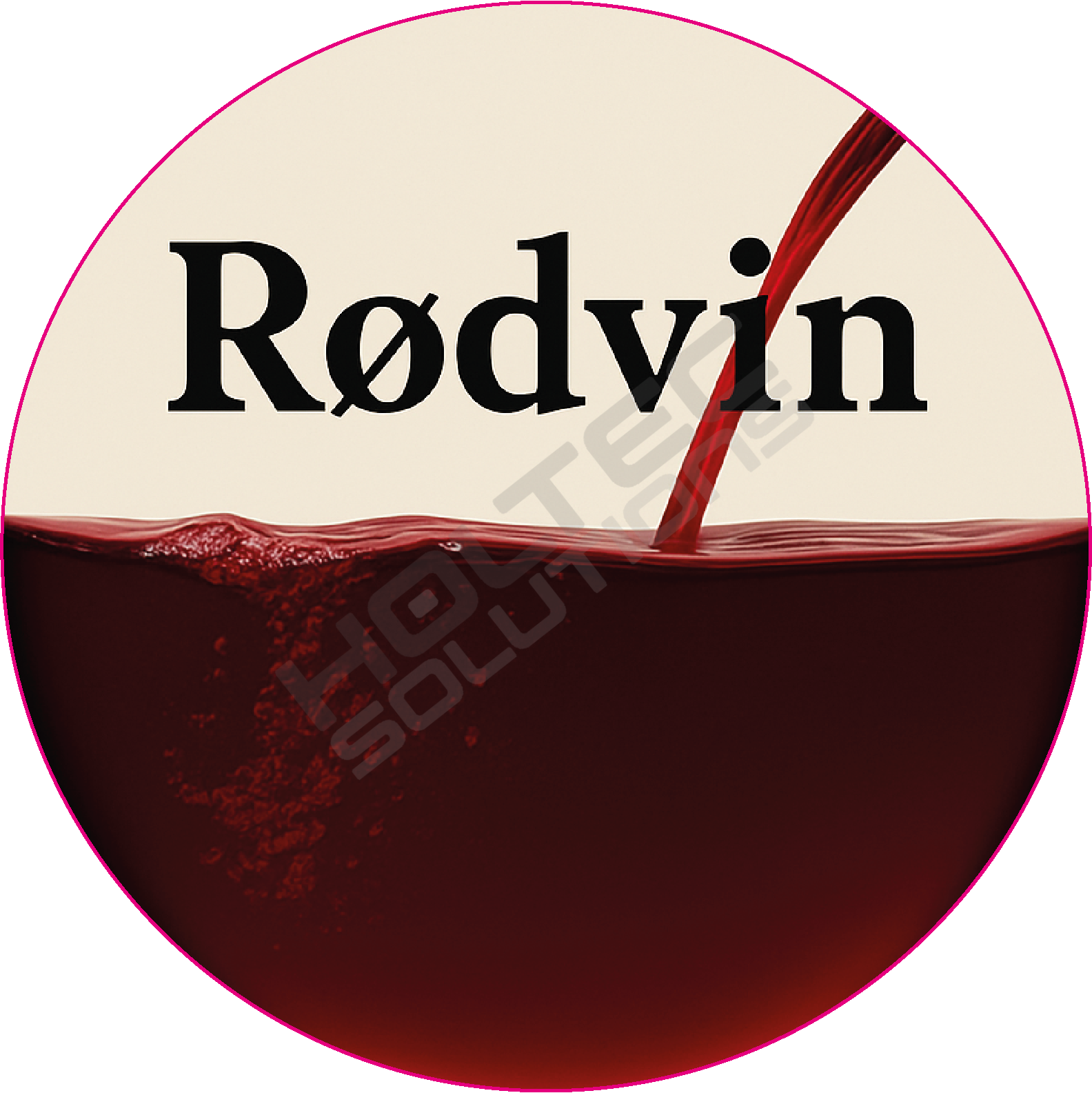Frogeye produktmærke/emblem med tekst "Rødvin"
